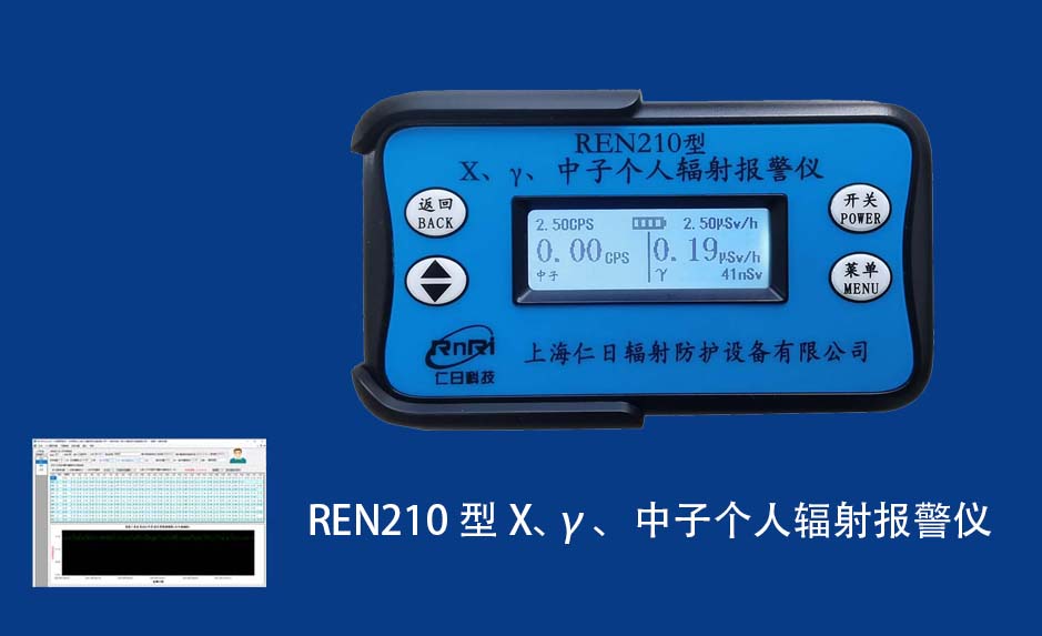 REN210 個(gè)人計(jì)量報(bào)警儀REN210型X、γ、中子個(gè)人輻射報(bào)警儀內(nèi)置SiPM和鋰玻璃晶體組成中子探測(cè)器儀器,采用反照率方式探測(cè)中子射線,同時(shí)也能探測(cè)X、γ射線。因此它可同事監(jiān)檢測(cè)X、γ、中子三種射線。能顯示工作場(chǎng)所的劑量當(dāng)量率和累積劑量,更換電池時(shí),日期及累積數(shù)據(jù)能永久保存?蛇x配RenRiPersonal個(gè)人劑量管理軟件,該軟件可存儲(chǔ)多個(gè)人的歷史數(shù)據(jù),能記錄日累積、月累積、年累積、輻照時(shí)長、計(jì)算平均劑量率、扣除或不扣除本底輻射,且以文字和圖譜的方式展現(xiàn)數(shù)據(jù)。廣泛應(yīng)用于環(huán)保、化工、水泥、煤礦、土木工程、石油、醫(yī)院、疾控、進(jìn)出口商檢、核電、加速器、機(jī)場(chǎng)、中子源庫和其他安檢、邊境控制海關(guān)檢測(cè)等領(lǐng)域中的工作人員進(jìn)行個(gè)人安全防護(hù)監(jiān)測(cè)及放射性提示。